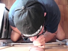 Homemade gloryhole BJ DILF tasting cum after sucking cock