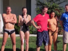 Blindfolded sex games in the pool