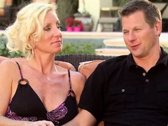 Softcore threesome in the hot tub with kinky swinger wifes!