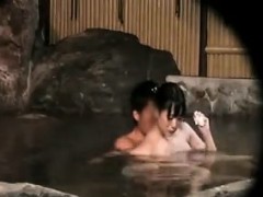 Subtitled first time Japanese lesbian hot spring bathing
