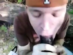 Dickblowing Asia twink pounded outdoors in doggystyle