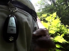 Older Asian Grandpa sucks younger in forest